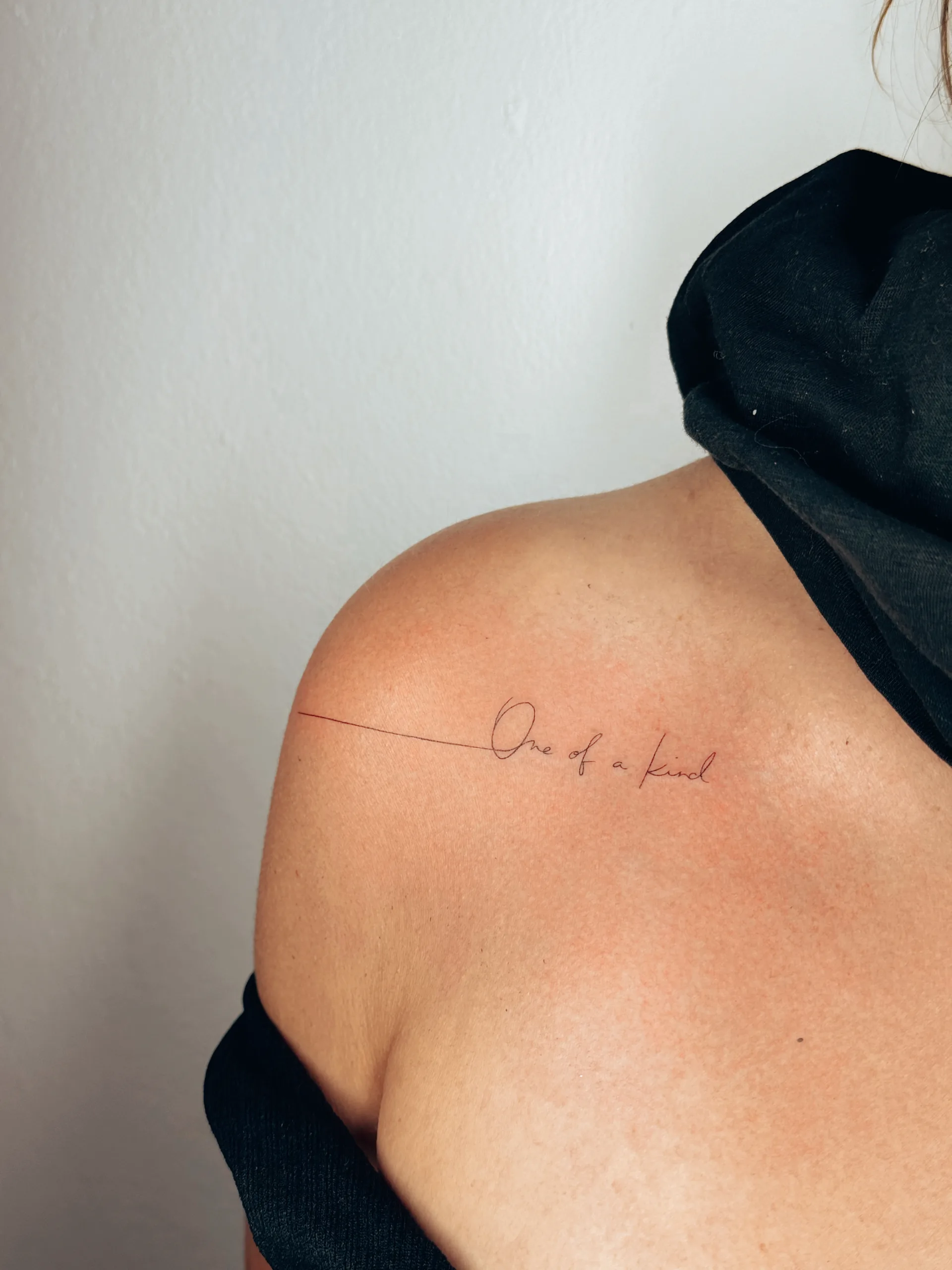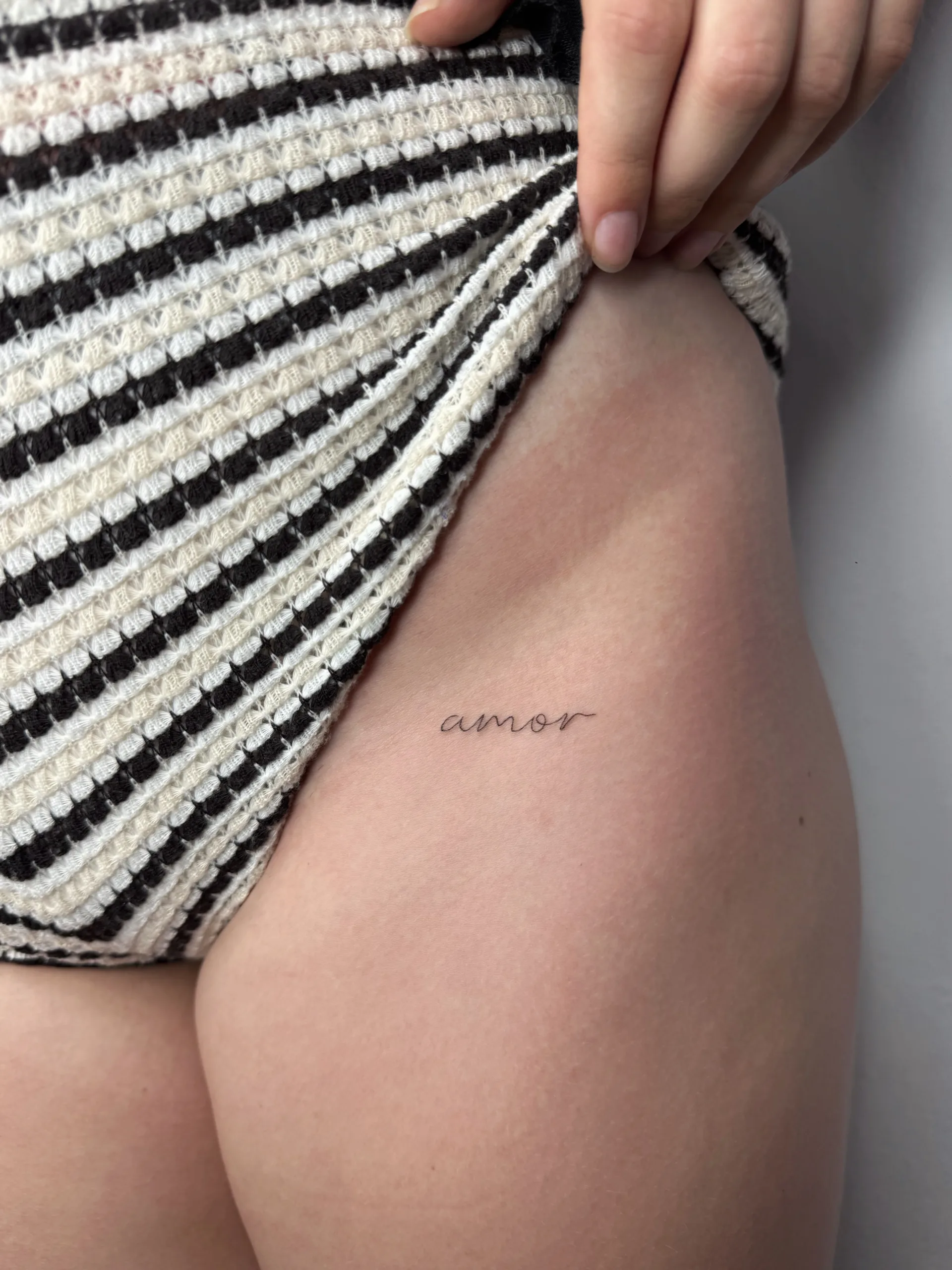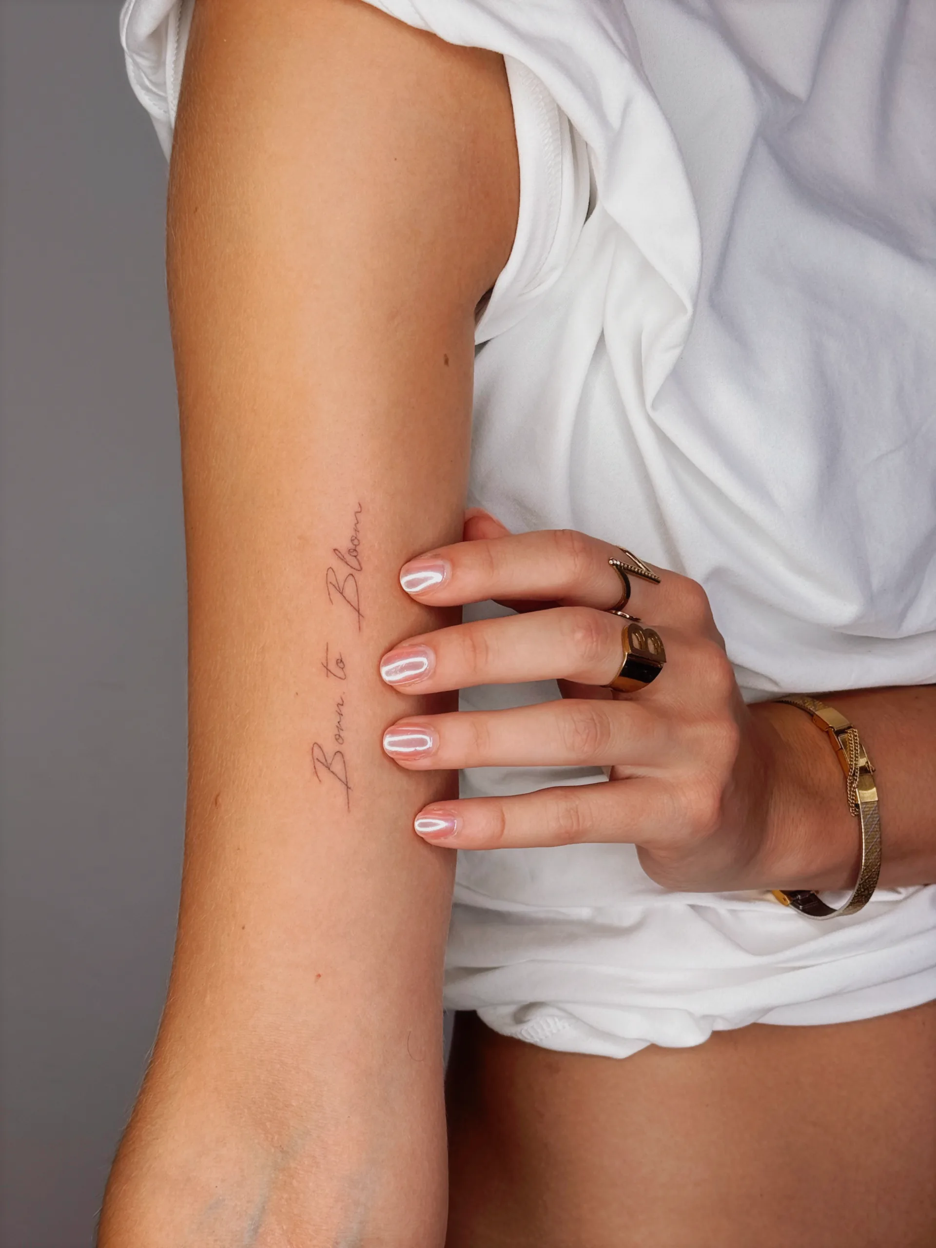 In dieser Galerie findest du eine vielseitige Auswahl an Lettering Tattoos auf Ibiza. Die Designs reichen von minimalistischen Fine Line Schriftzügen über elegante Script Tattoos bis hin zu klarer Typografie und feiner Kalligrafie. Schriftstil, Größe und Platzierung werden dabei individuell an die jeweilige Person angepasst und spielen eine zentrale Rolle für die Wirkung des Tattoos.