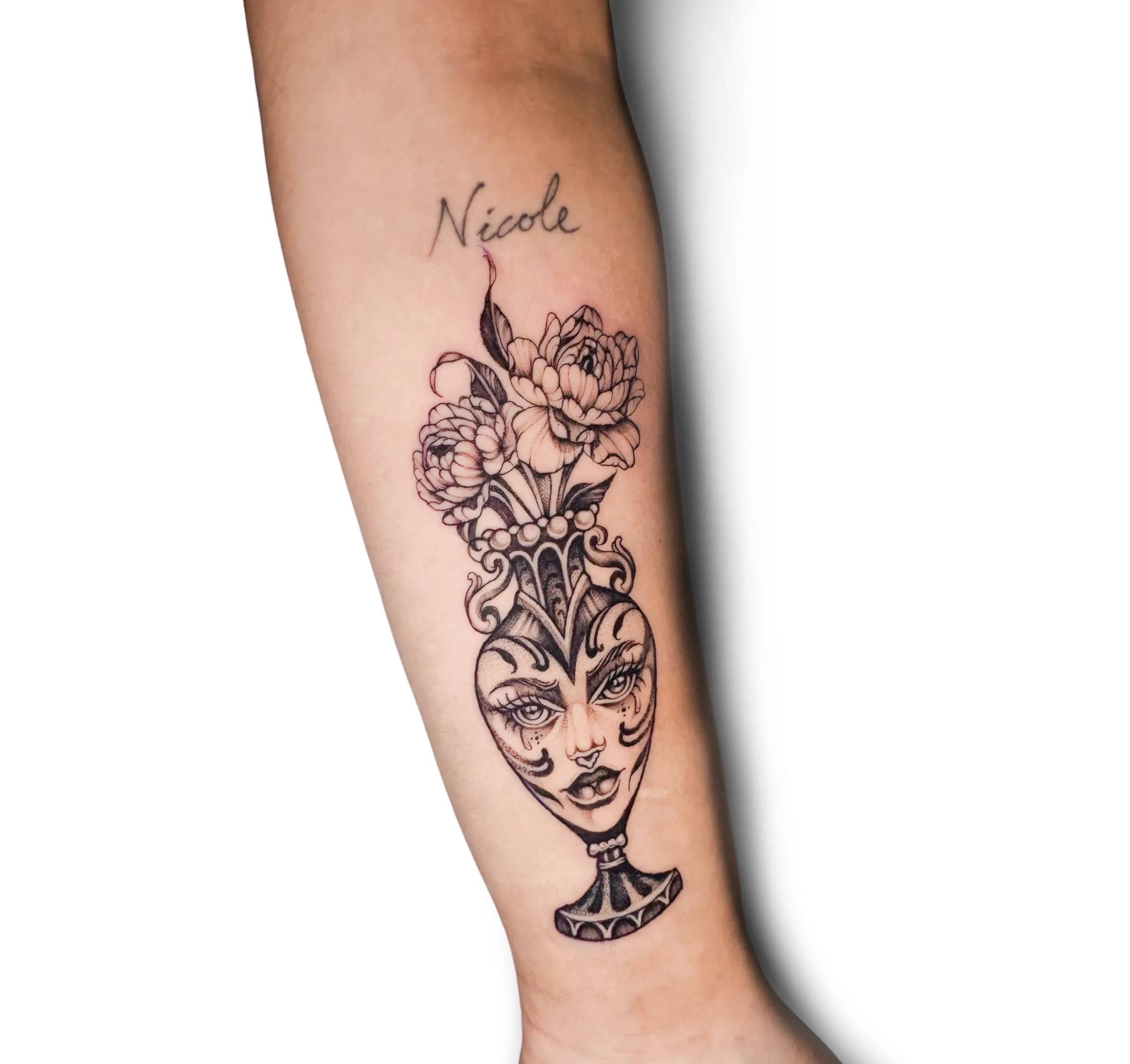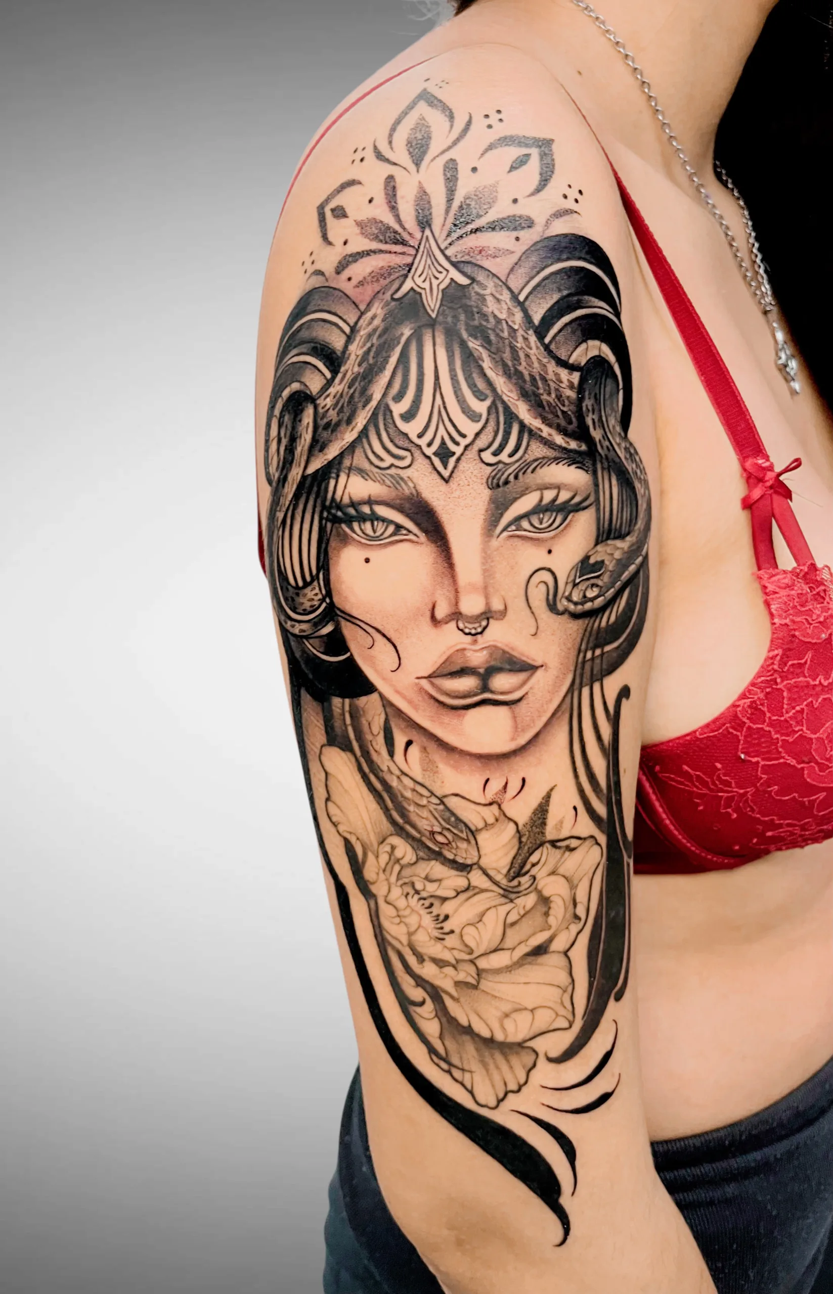 • Lieblingsmotive: Blumen, ornamentale Elemente, Schlangen und weibliche Gesichter – oft kombiniert zu individuellen Designs